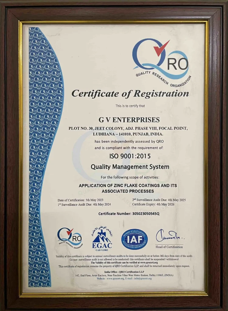 G V Enterprises, a leading zinc Flake Coating manufacturer in Ludhiana, offers an extensive range of zinc Flake Coatings that are used in a wide variety of industrial and automotive applications. The company’s coatings are designed to provide superior protection against corrosion and wear. The company manufactures its zinc Flake Coatings using the latest technology and state-of-the-art equipment. G V Enterprises has a wide distribution network in Ludhiana and across the Punjab region.
